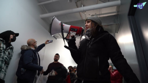 Pro-Palestine protesters from to CBC Montreal offices, says CBC is complicit in Palestinian 'genocide'.